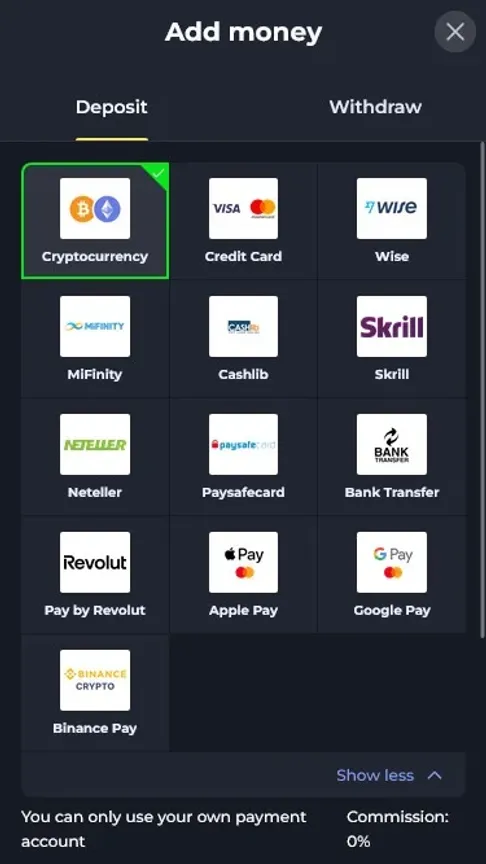 Añade fondos a tu cuenta de forma rápida y 100% segura.
